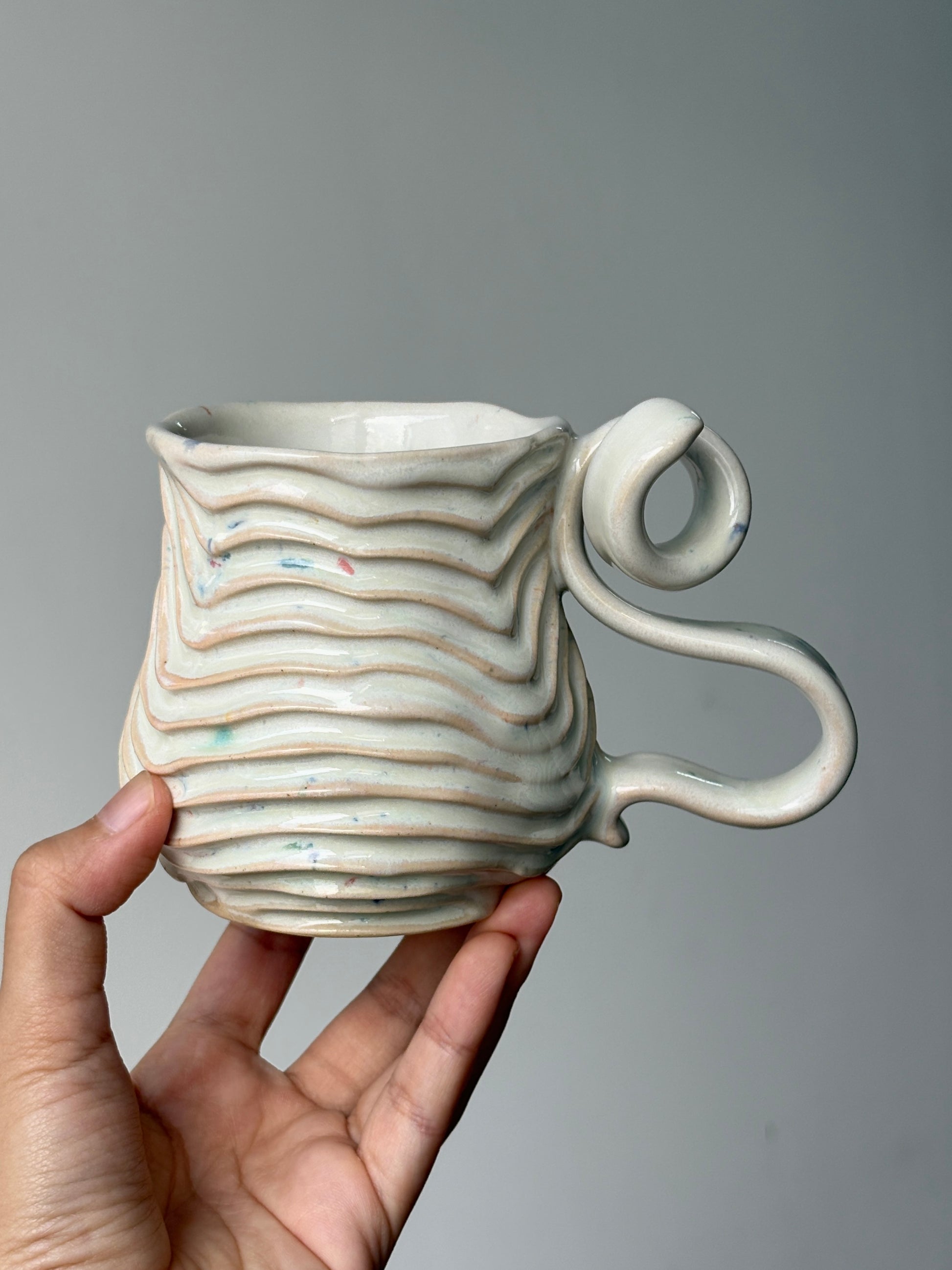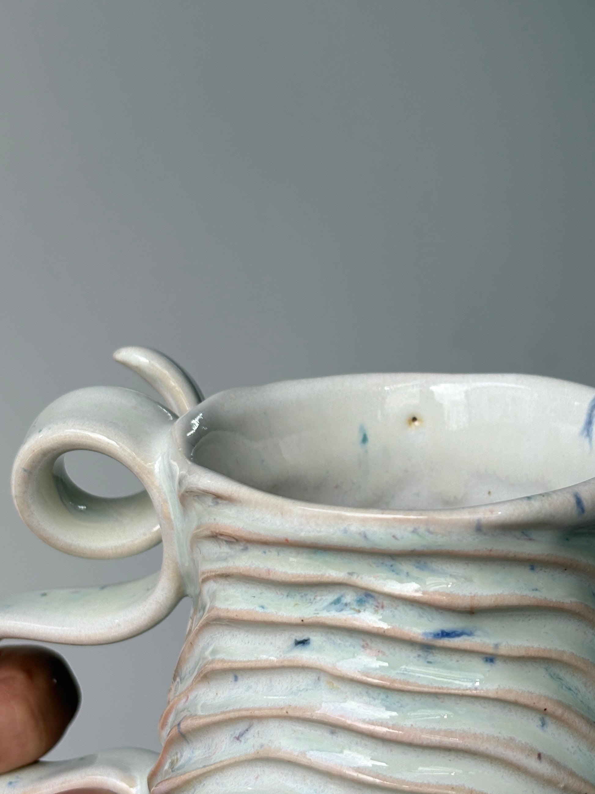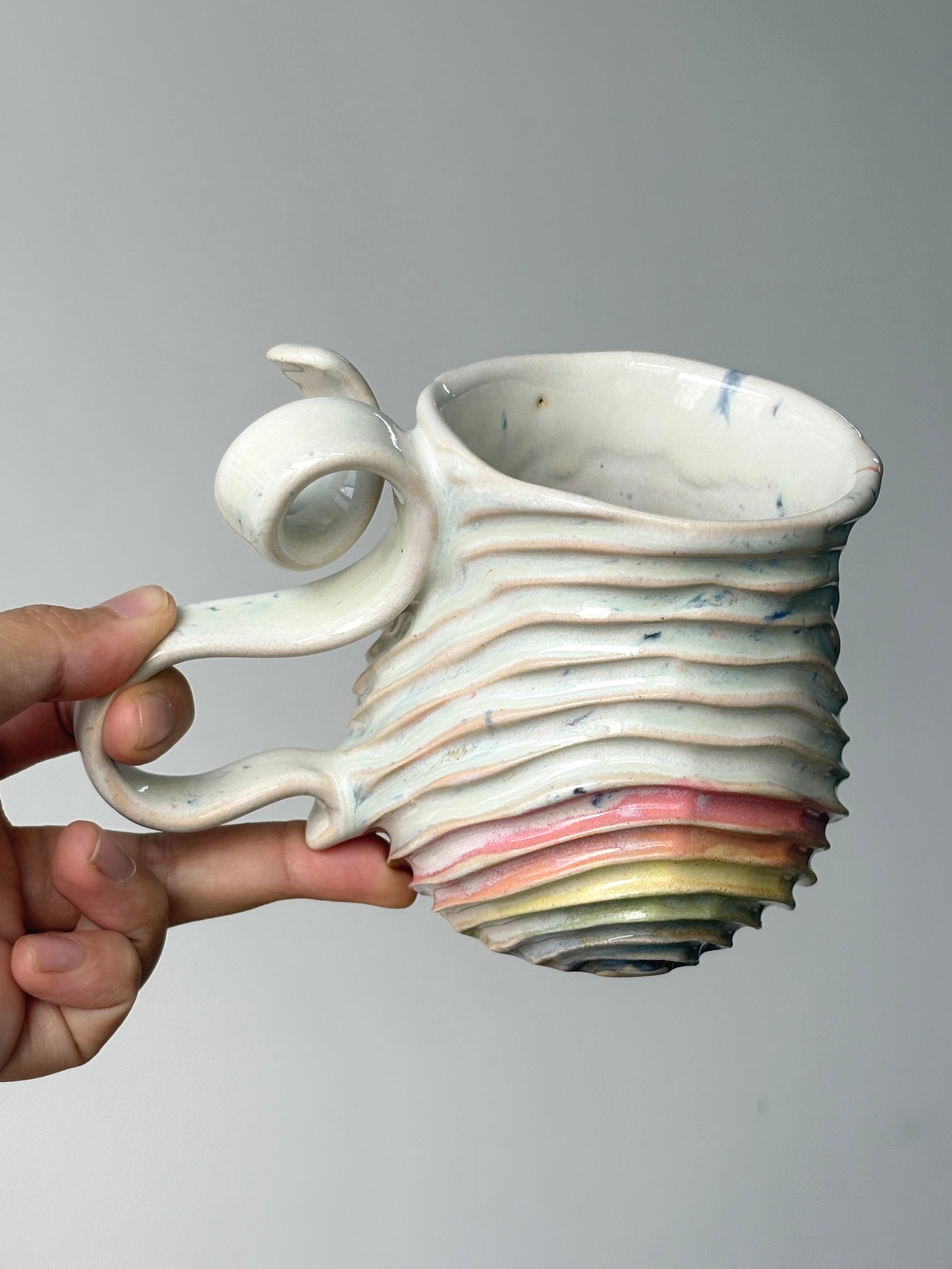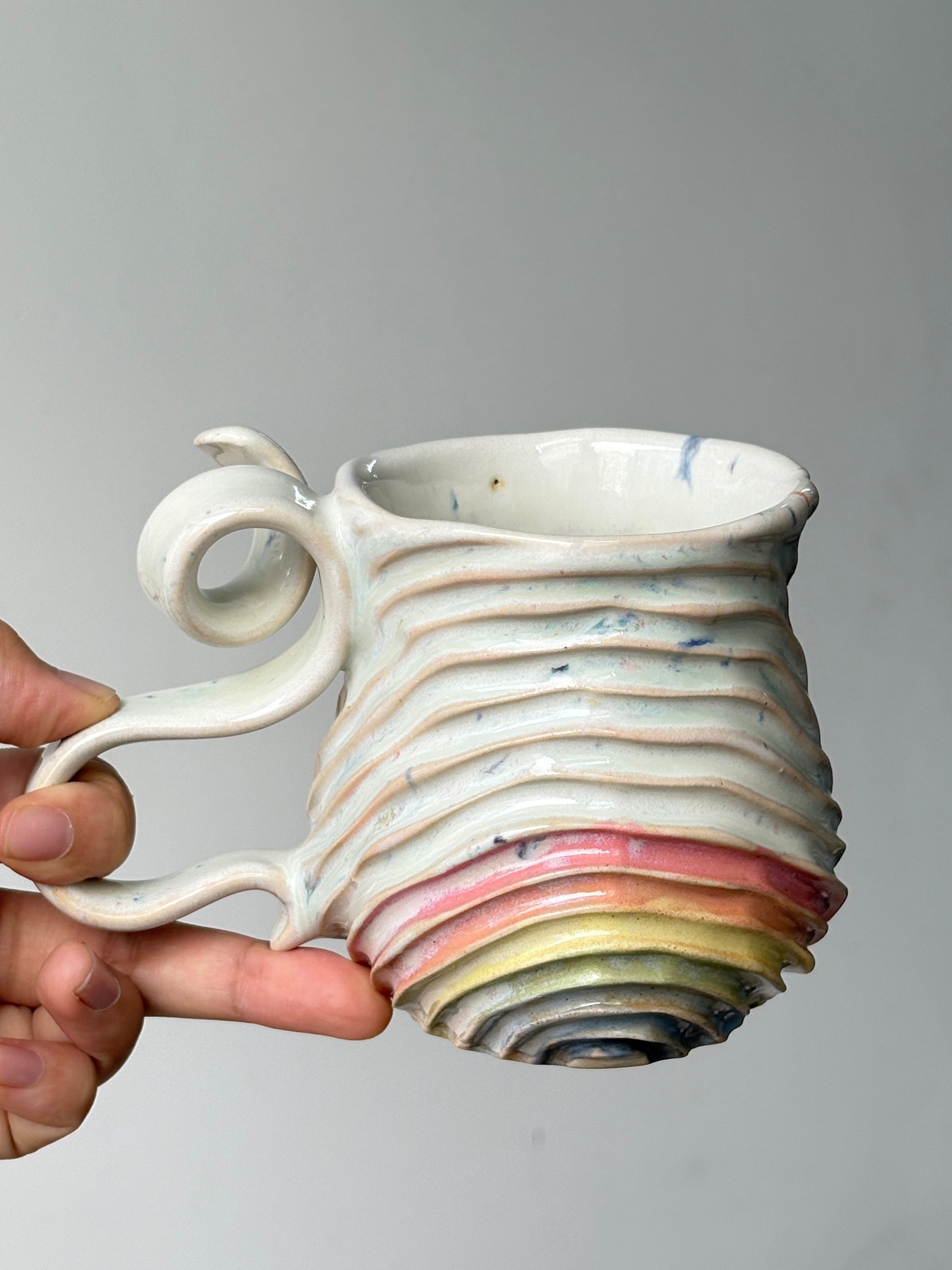 A favourite, confetti seabed mug with a rainbowed belly.