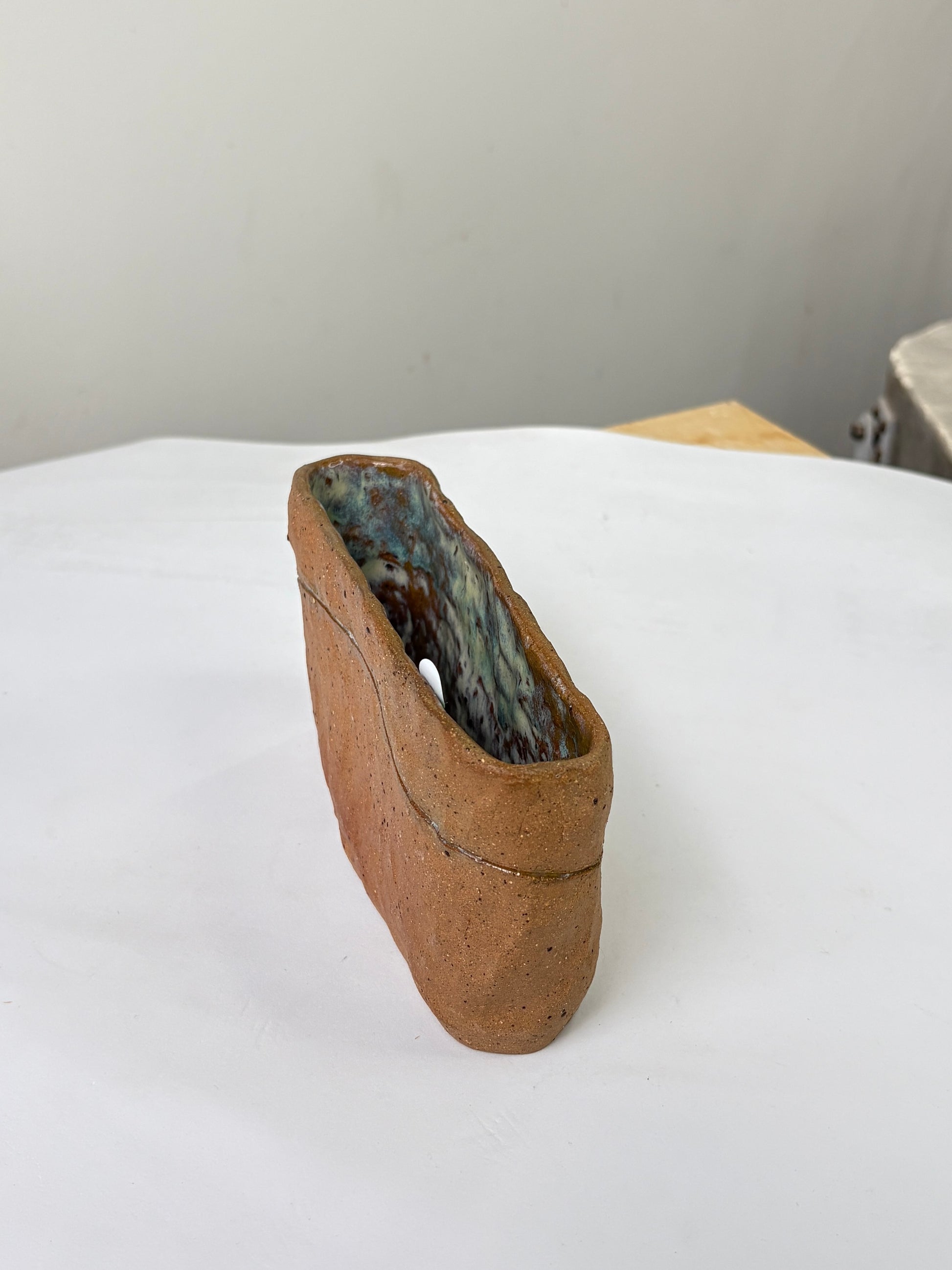One from the sample shelf. The idea was this shape to sit on windowsills and filled with tiny bloooms. Made in 2019.