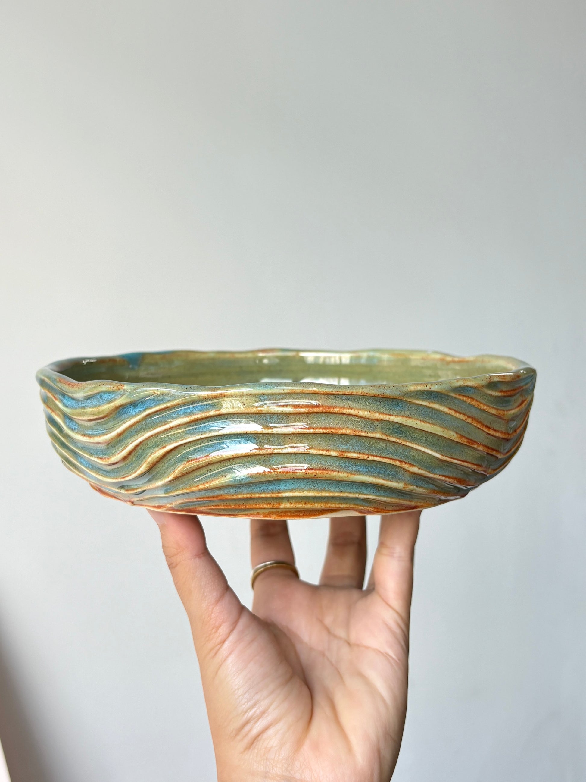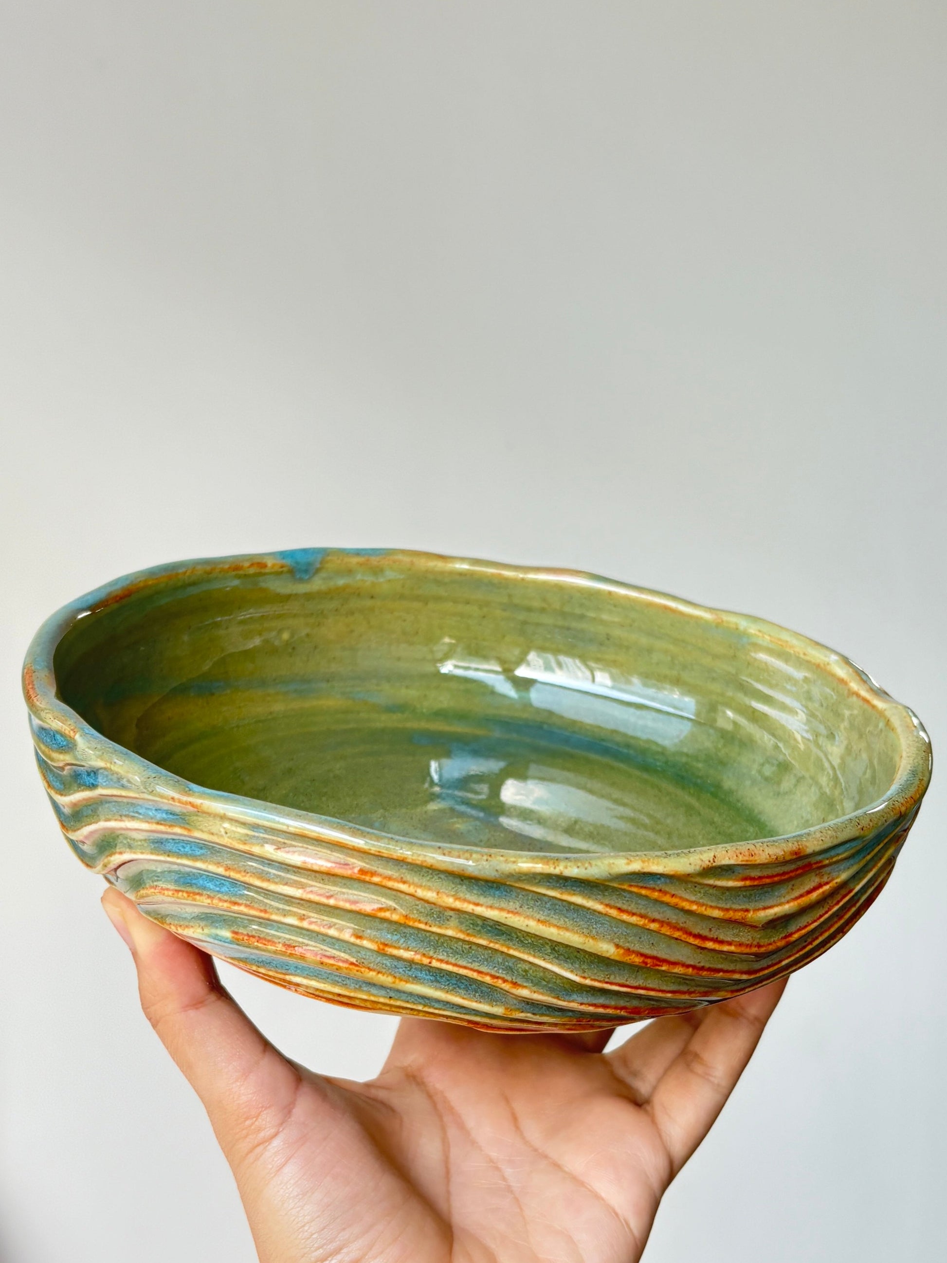The kind of piece you can have pasta or some Lontong dish in. Glaze in the calming greenish brown earthy tones.